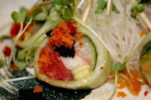Tuna, Salmon, Red Snapper, Crab, Avocado wrapped in Cucumber finished with Ponzu sauce...